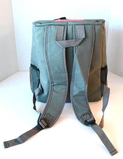 Grab this foam insulated, heat-sealed, leak-resistant cooler backpack. It has a front slip pocket and two mesh side pockets. Has duel padded, adjustable shoulder straps and a grab top handle. Size: 12" H x 9" W x 7" D